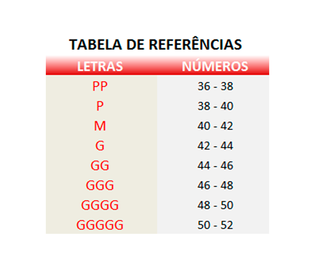 Confeccionado com tecido Santa Constância com 92% Poliamida e 8% Elastano.